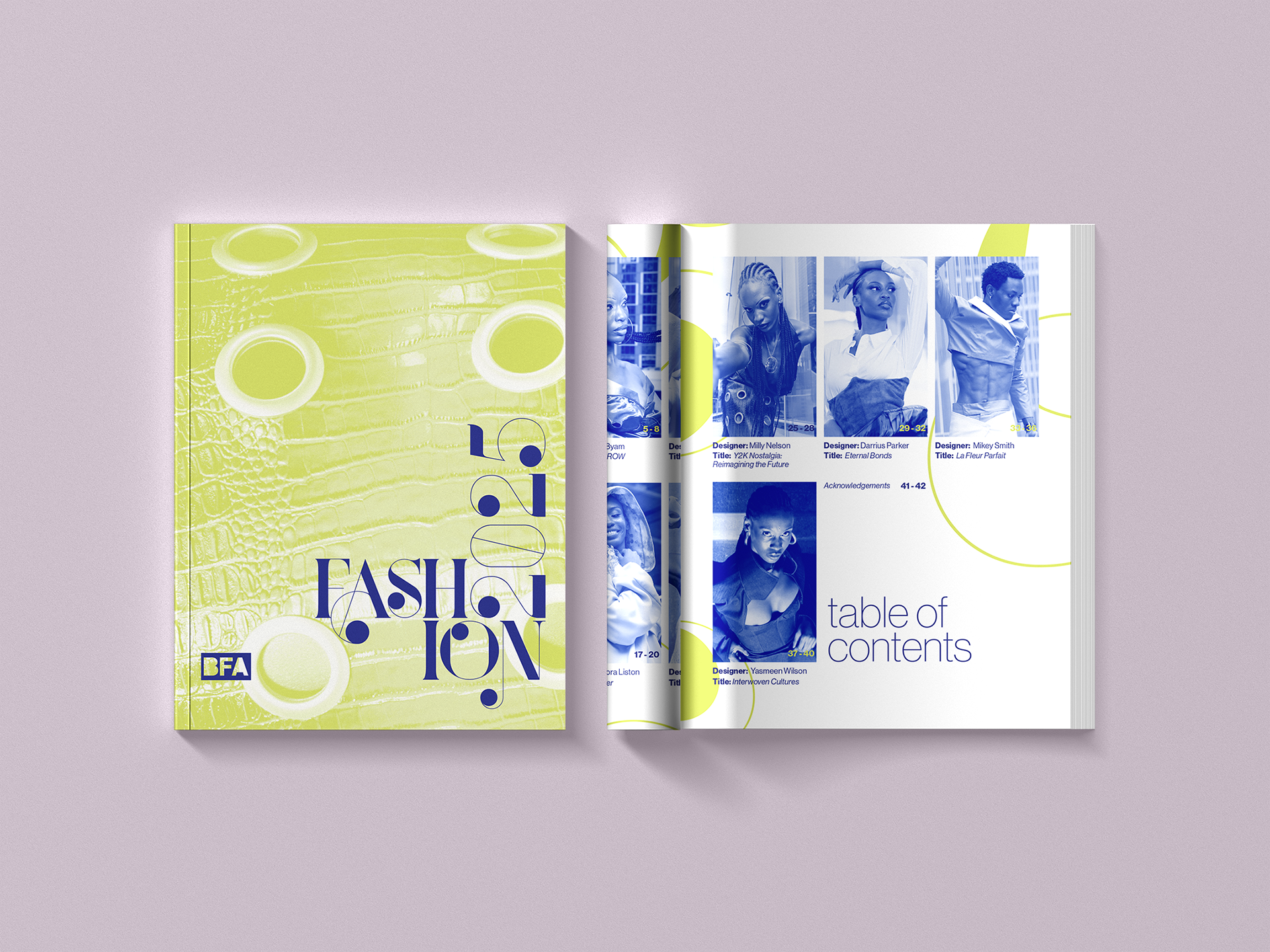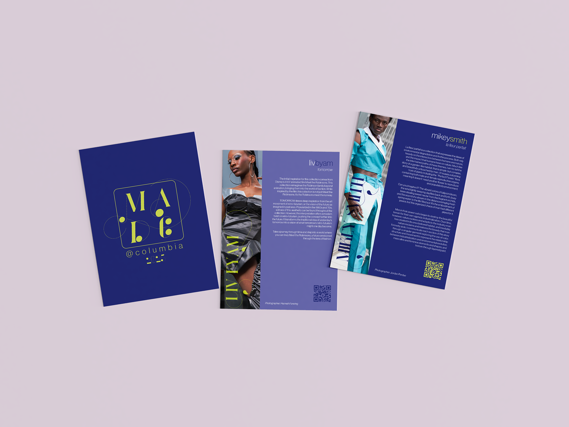This project is part of an exhibition for the BFA Fashion Showcase taking place at Columbia on Manifest day. It was created to display the designers and their work in a catalog that show attendees can take home. Created in close collaboration with clients, the Fashion Design Majors and faculty.